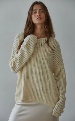 Knit Sweater See Through Long Sleeve Pullover Top- Natural Color