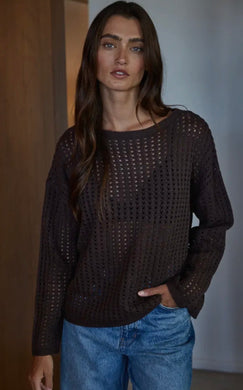 Knit Sweater See Through Long Sleeve Pullover Top- Dark Mocha