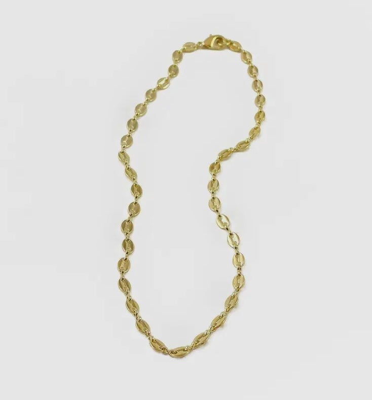 The Maritime Necklace is a classic mariner chain choker comprised of unique connected bars that resemble maritime knots. This mariner gold chain is also known as a “Gucci Chain.”