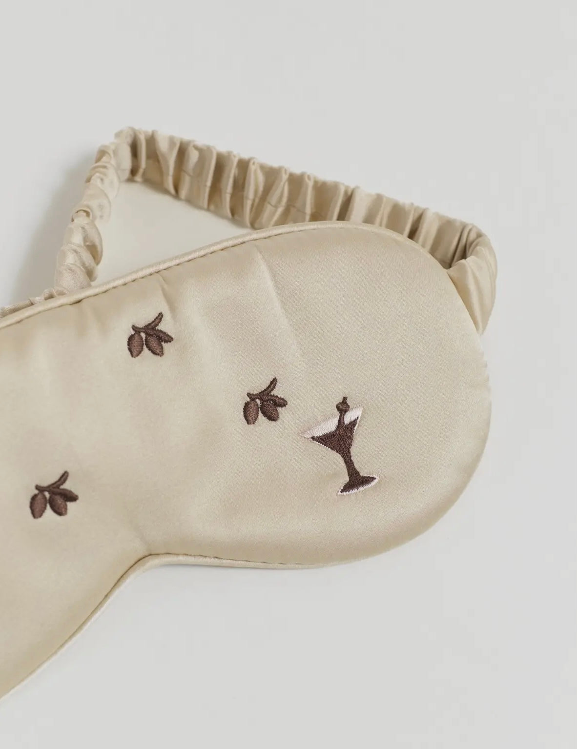 Unwind in style with the Olive Silk Sleep Eye Mask, designed to bring a touch of fun and luxury to your nightly routine. Crafted from silky-smooth fabric that’s gentle on the delicate skin around your eyes, it helps block out light for deeper, more restful sleep. Adorned with playful olive and cocktail-glass embroidery and presented in a signature Lost Pattern gift box, it’s an effortlessly chic treat for yourself or a thoughtful gift for someone special.