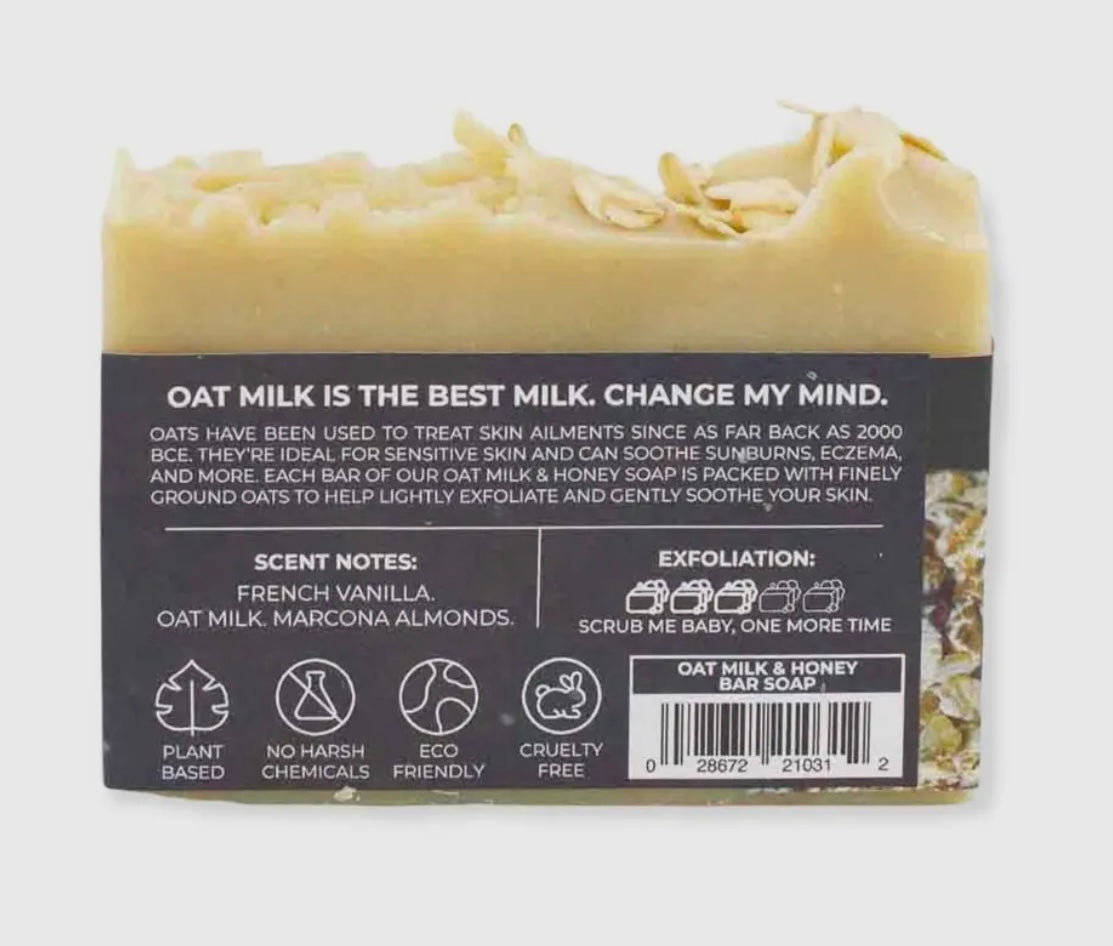 Widely known for its benefits in skincare, oats have been used to treat a wide variety of skin ailments since as far back as 2000 BCE. Their anti-inflammatory and antioxidant properties are ideal for sensitive skin and have been known to soothe sunburns, eczema, poison ivy, and more. Every bar of our Oatmeal Milk & Honey soap is packed with a generous amount of finely ground oats to help lightly exfoliate and gently soothe your skin.