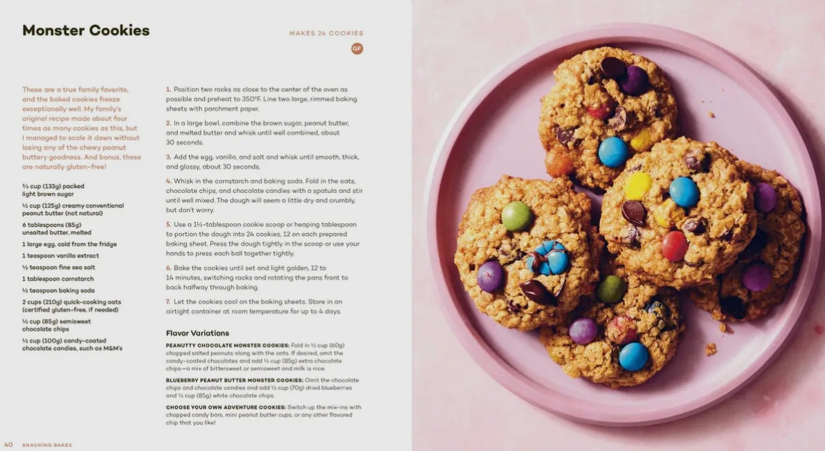 • Cookies: Magical Peanut Butter Cookies, Monster Cookies, New Favorite Chocolate Chip Cookies, Blueberry Cornmeal Cookies, Fudgy Sesame Oat Cookies, Snack Attacks, Banana Brownie Cookies