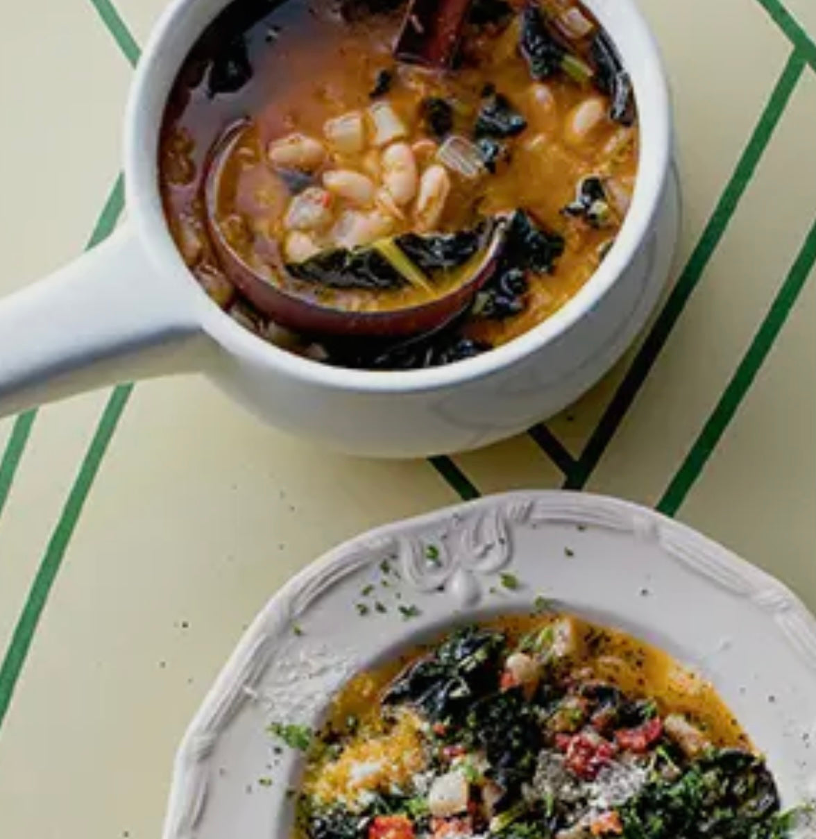 • Soups: Giant Meatball Soup in Beefy Tomato Broth; Crab Congee; Creamy Sausage Soup with Rapini and Tortellini; Caldo de Pollo
